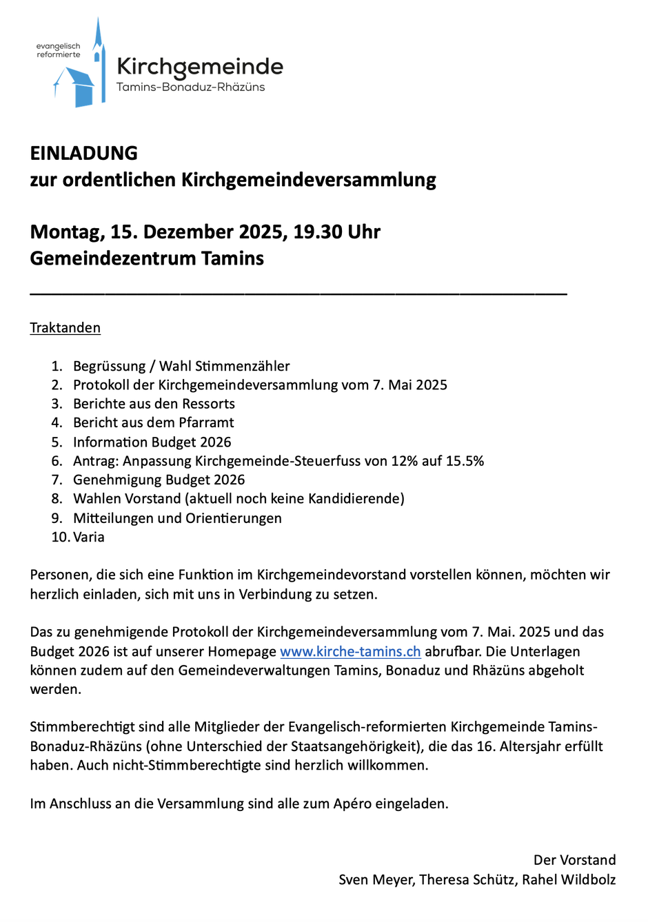 Anmeldung bis am 28. November an judith.maier@kirche-tamins.ch